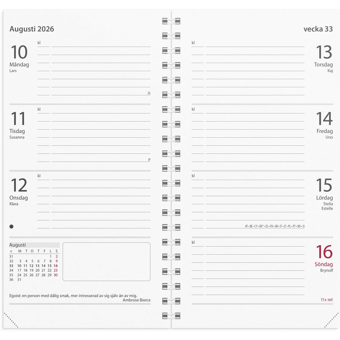 Spiralbunden kalenderrefill till systemkalender med ringmekanism.