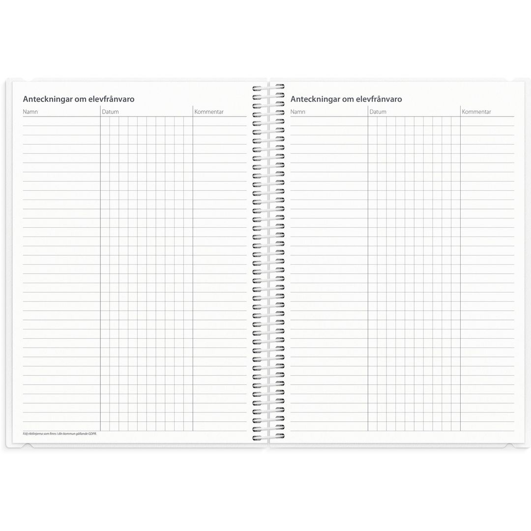 ● Innehåll: Årsplaner, schema, kontaktlista, barnförteckning, veckoschema, elevfrånvaro, anteckningar, kartor