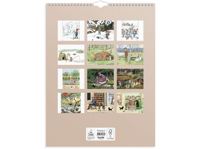 Väggkalender med bilder från välkända barnböcker av Elsa Beskow.