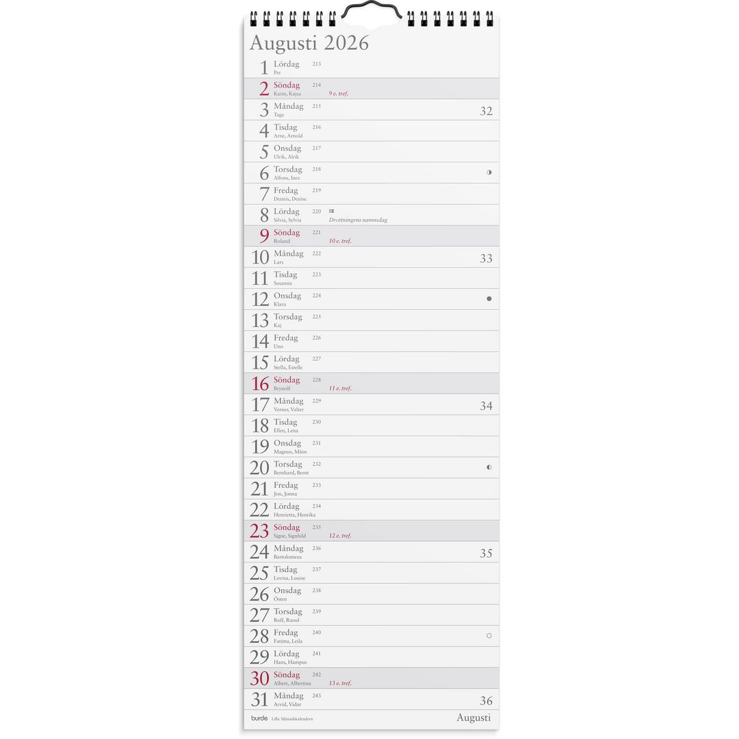 ● Innehåll: Kyrkliga helgdagar, Flaggdagar, Helgdagar/aftnar, Månfaser, Namnsdagar, Temadagar/händelser