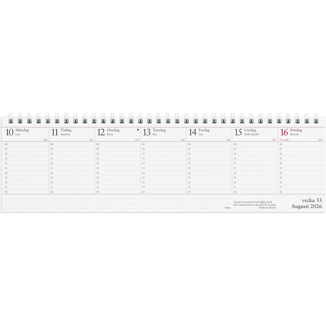 Spiralbunden. En vecka per blad. Timindelad 8-18.