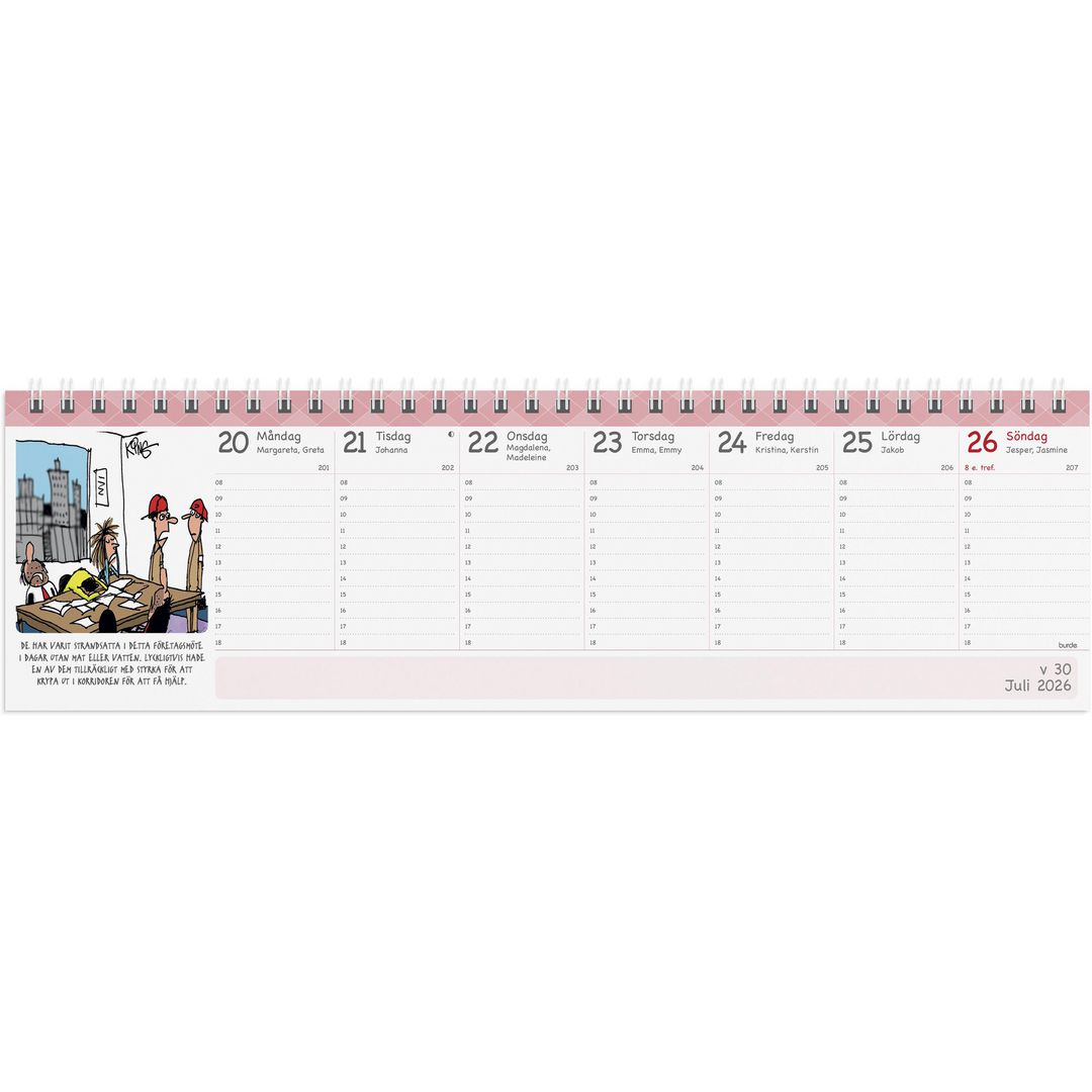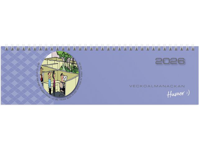 Spiralbunden. En vecka per blad. Timindelad 8-18. Ny humorbild varje vecka.