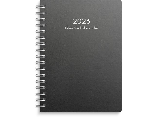 Kalender med en vecka per uppslag. Hela vänster sida på alla uppslag är linjerade. Timindelad 8-17. Årsplaner för innevarande och följande år samt inbundet telefonregister.