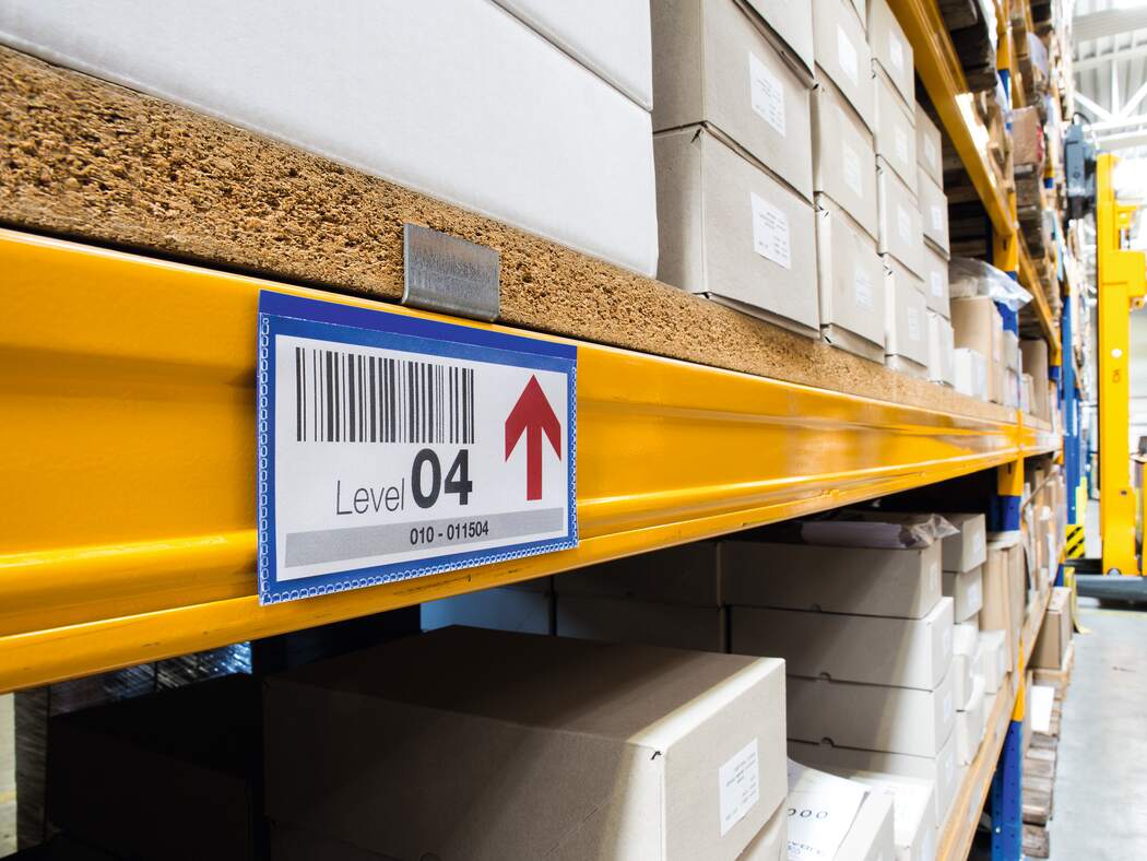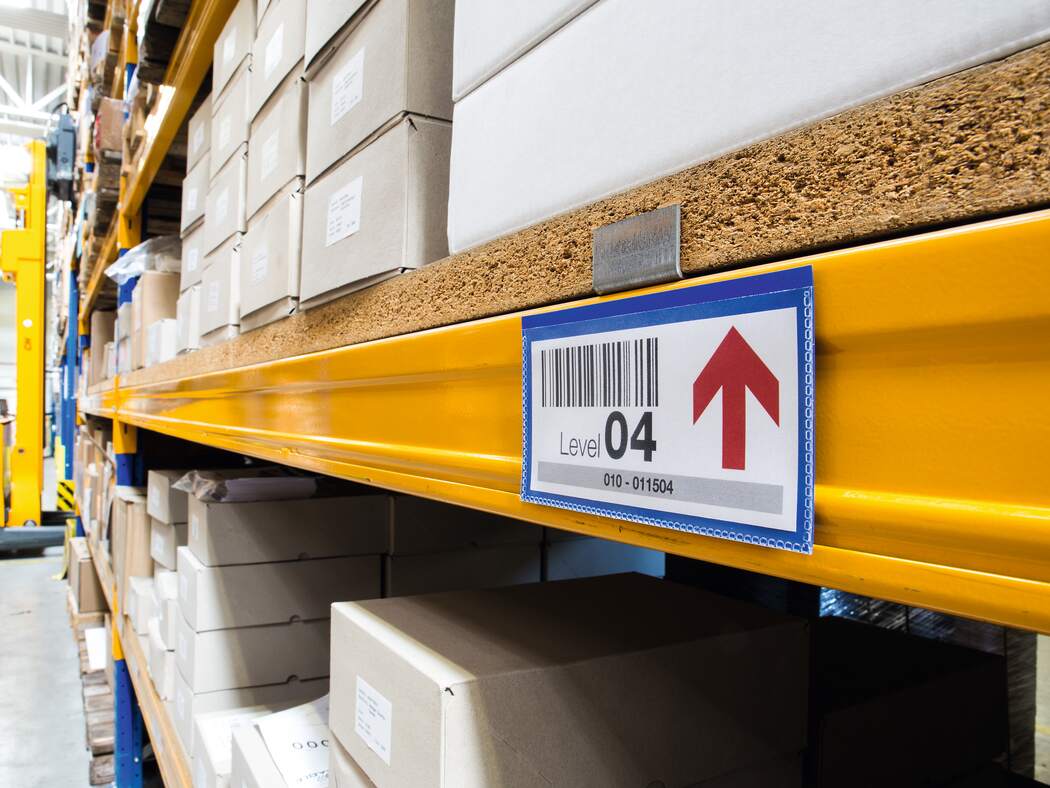 Etiketthållare med två magnetremsor på baksidan. För användning på metallytor som t ex lagerhyllor och metallcontainrar.