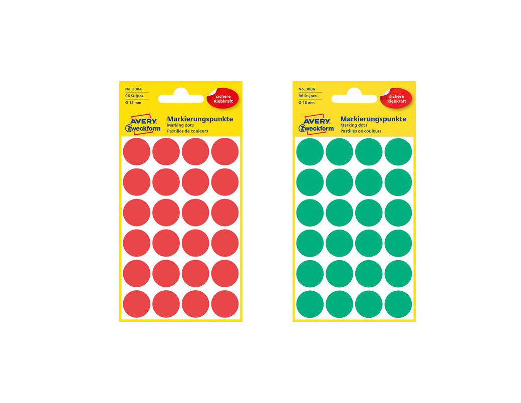 Färgkodningsprick AVERY Ø18mm 96/FP