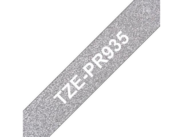 Brother original TZe-PR935 är en exklusiv premiumtape med vit text på glittrig silverfärgad bakgrund. Använd tapen för att skriva ut stilfulla placeringskort till bröllop eller dop. Tapen är också perfekt för att märka kort till buffébord på ett stilfullt sätt. Vill du ha din gåva skall bli ihågkommen? Använd premiumtape för att skriva ut personliga gratulationer till din present. Den laminerade tapen garanterar att dina etiketter skyddas mot skador. Kompatibel med P-touch-etikettskrivare som visar TZ- eller TZe-logotypen på kassettkåpan.