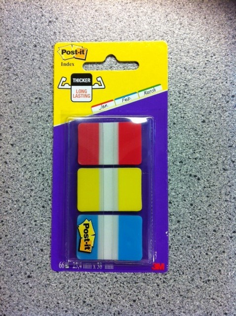 Indexflikarnas färger: Röd, gul och blå