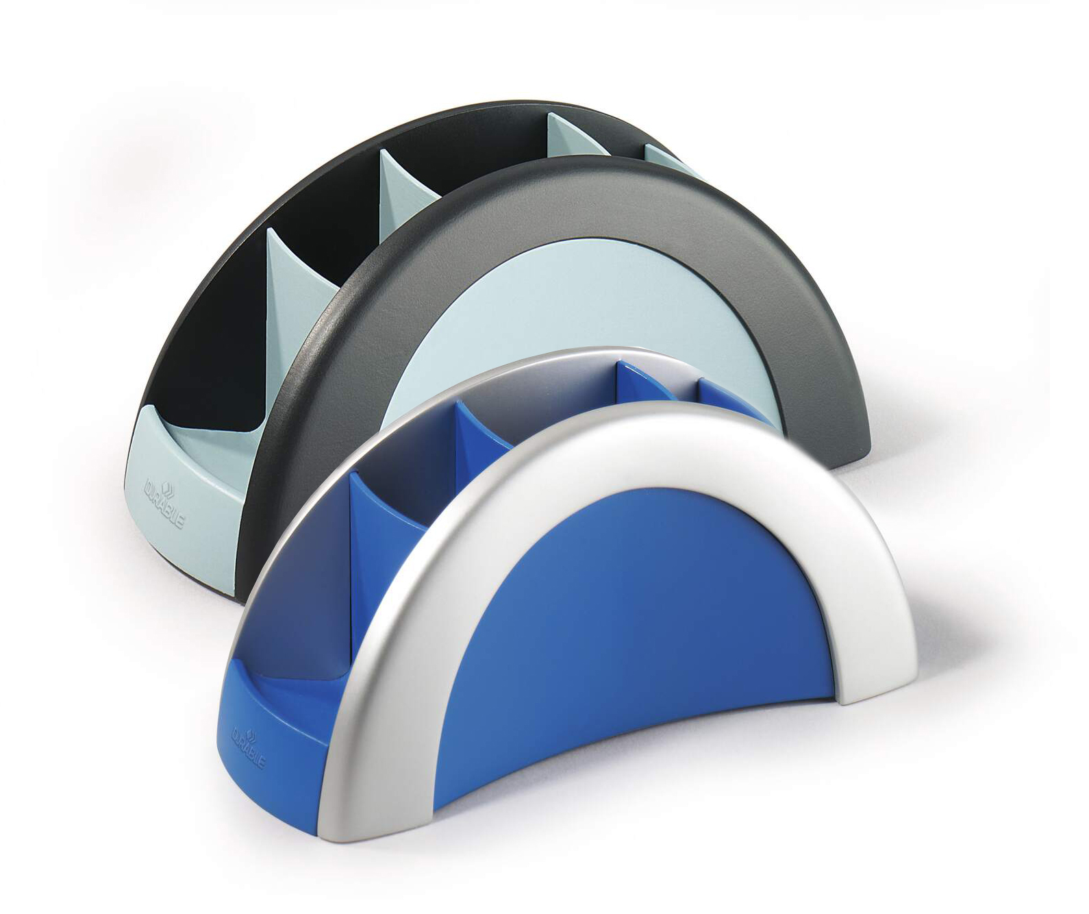 DURABLE pennställ är ett praktiskt och stilrent pennställ med fem fack i olika storlekar och djup, utformat för att hålla skrivbordet organiserat.