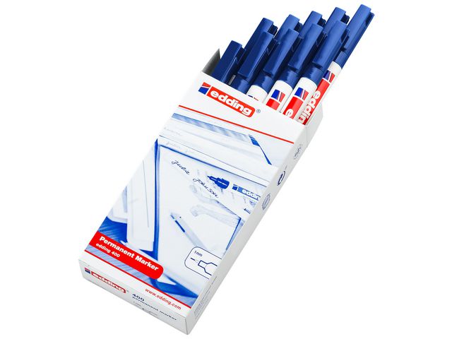 Den här permanenta märkpennan innehåller bläck som torkar snabbt och är smetfritt och vattenbeständigt, vilket hjälper dig att skriva tydligt och fläckfritt. Den är speciellt utformad för mångsidig användning och kan användas i flera olika sammanhang. Den permanenta märkpennan Edding 400 har en tunn spets som ger 1 mm linjebredd och den passar utmärkt när du vill ha mer precision och noggrannhet. Det ger jämn skrift på nästan alla slags ytor, bland annat plast, metall, glas och trä. Märkpennan är tunn och lätt, vilket gör den extremt bekväm och enkel att använda. Den levereras med kork och fickklämma.