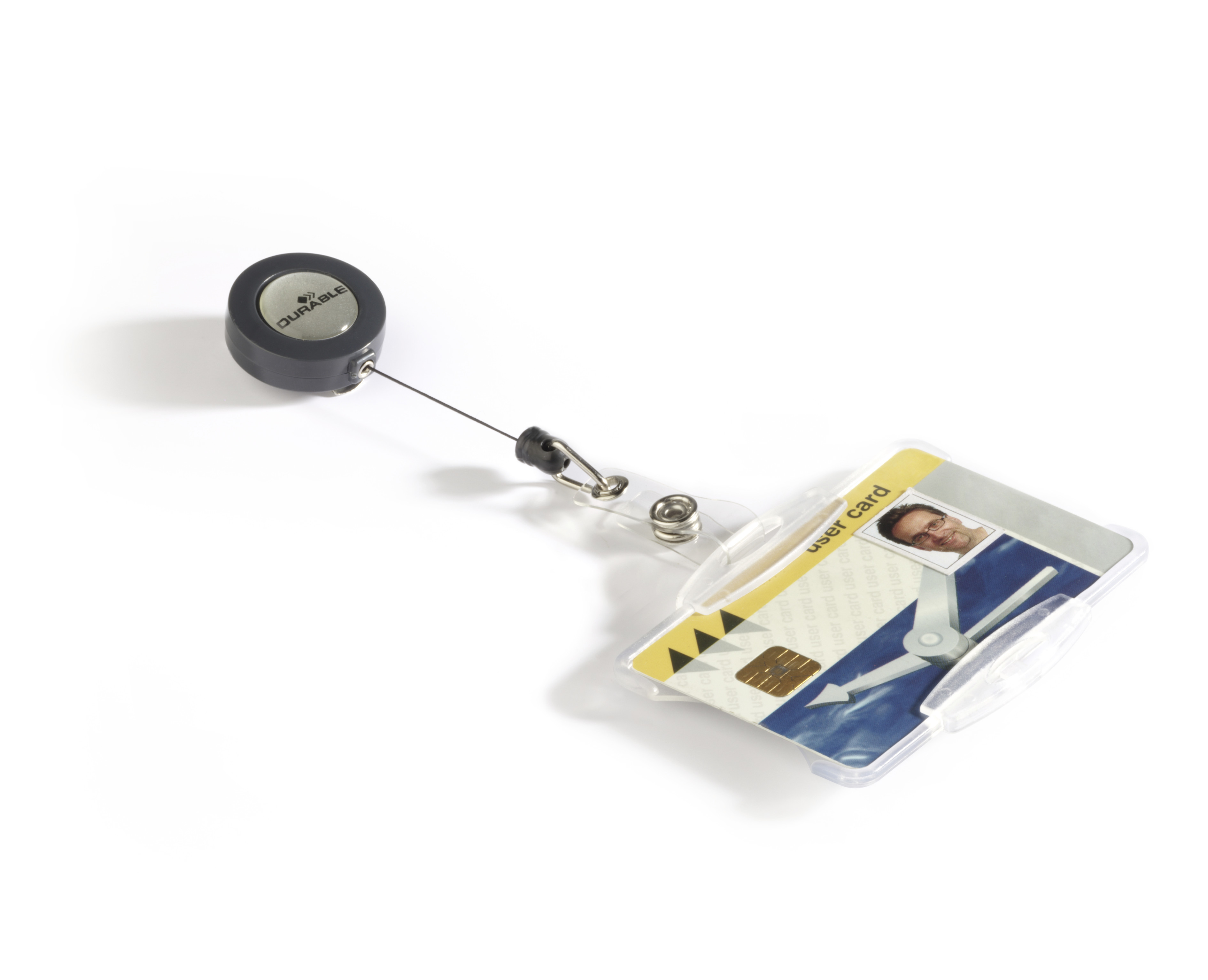 Skydda id-kortet, behörighetskortet eller passerkortet genom att använda en korthållare med anpassat utförande och fäste - så att kortet alltid sitter bra utan att vara ivägen, men ändå lätt åtkomligt. Denna öppna korthållare för 1 kort är av kraftig polystyrenplast med jojofäste som är utdragbart upp till 80 cm. Kan användas i både liggande och stående format. För standardkort ca 54x86mm.