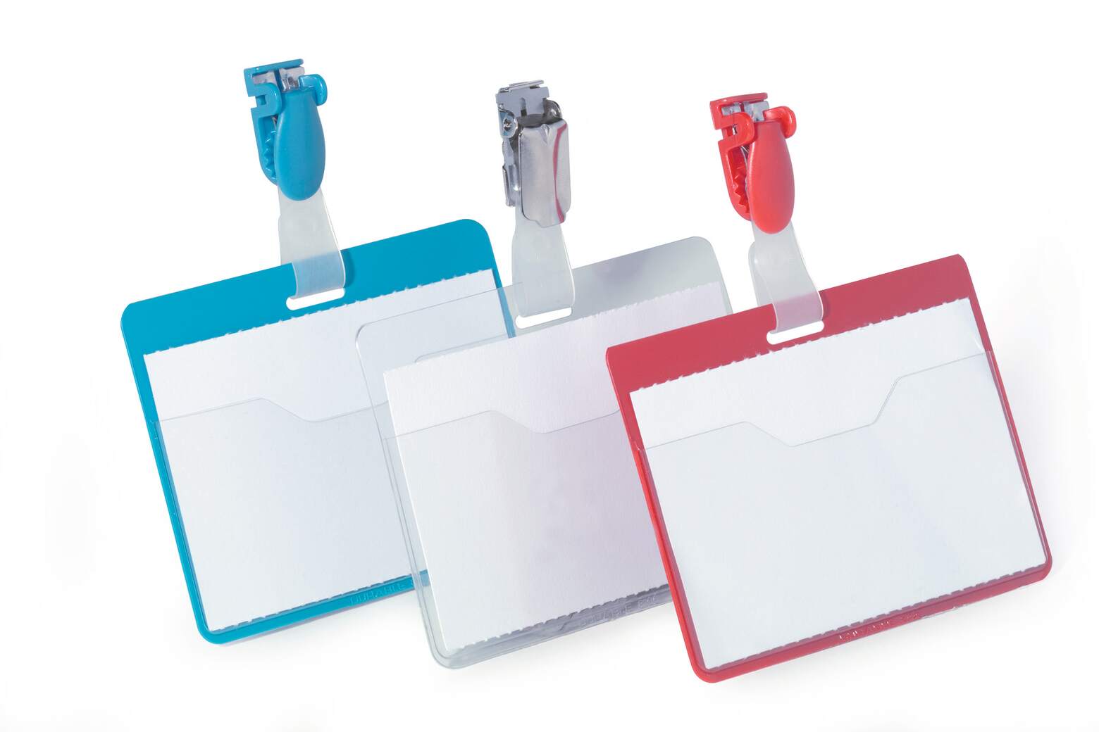 Konferensdeltagare, besökare på företag, personal på mässor, i butiker, serviceyrken och säljare - listan kan göras lång där det finns behov av namnbrickor i olika storlekar, design och fastsättningsmöjligheter. Den här namnskylten är i liggande format 60x90mm med ett vridbart hängselclips som gör att skylten alltid hänger i rätt läge. Den nedskurna framsidan gör det enkelt om kortet ska bytas relativt ofta. Vita etiketter i en remsa medföljer. Etiketter på A4-ark för utskrift i skrivare kan beställas separat. Använd gratisprogrammet DURAPRINT® som finns på www.duraprint.se för att skapa och skriva ut snygga namnetiketter. Tillbehör: Badgemaker® etiketter på A4- ark för utskrift i skrivare, artikelnr 145602