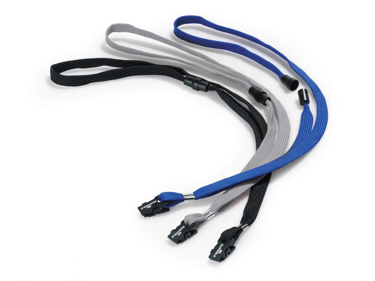 1 cm brett tubstickat band med säkerhetslås som öppnas om man fastnar i något. Används tillsammans med korthållare för passerkort eller namnskyltar med hål eller som nyckelband. Med fästclips i plast. Längd: 44 cm