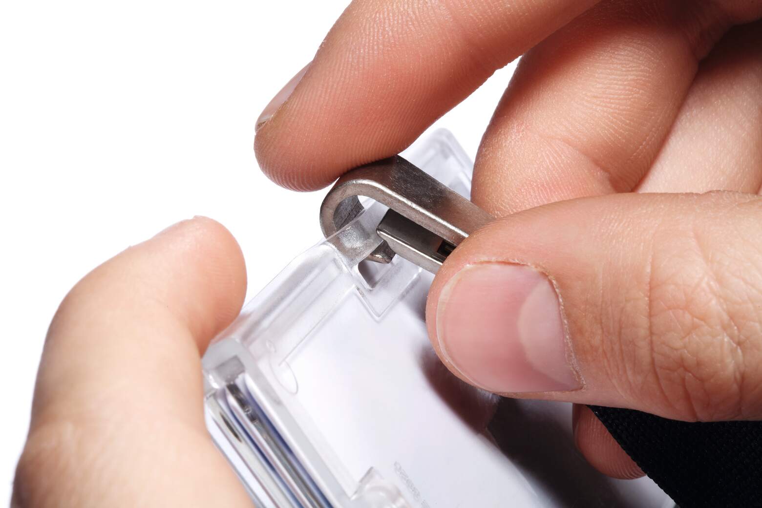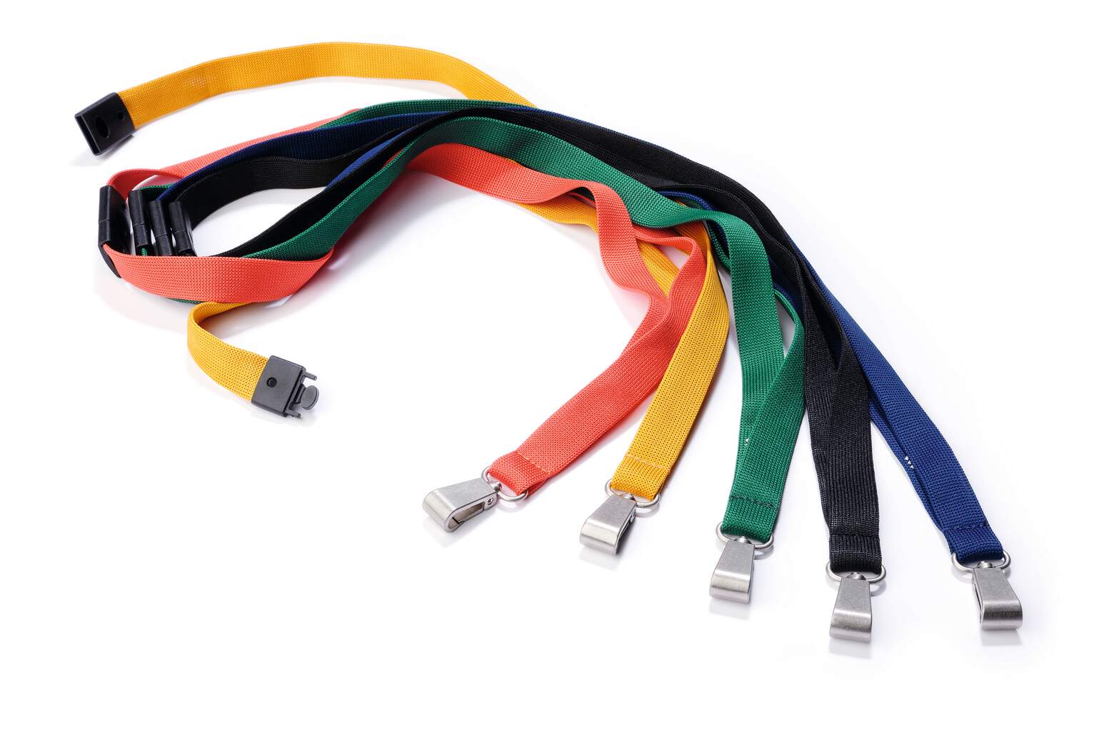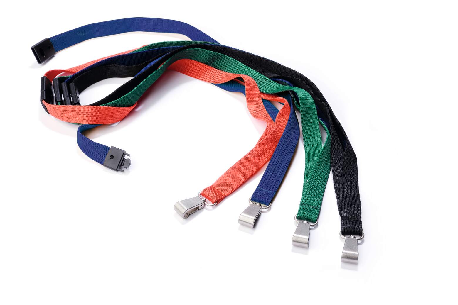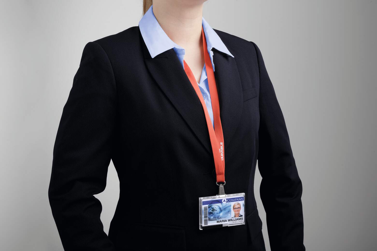 1,5 cm brett band av sidenmjuk textil med säkerhetslås som öppnas om man fastnar i något. Används tillsammans med korthållare för passerkort, namnskyltar med hål eller som nyckelband. Den 1,2 cm bred, roterbara karbinhaken av metall passar alla Durables korthållare och garanterar att korthållarna sitter fast ordentligt. Längd: 44 cm