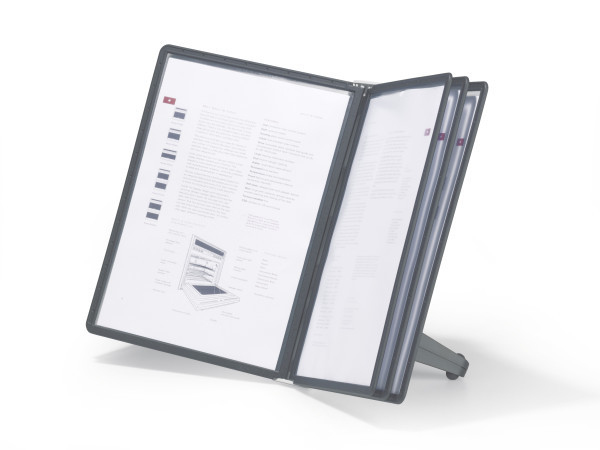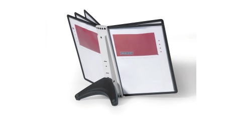 Platsbesparande bordsställ med 5 st A4-paneler av reflexfri polypropylenplast. Utmärkt för det lilla kontoret eller hemmakontoret. De miljövänliga panelerna är enkla att ta i och ur och den robusta foten ger stabilitet. 5 års garanti.