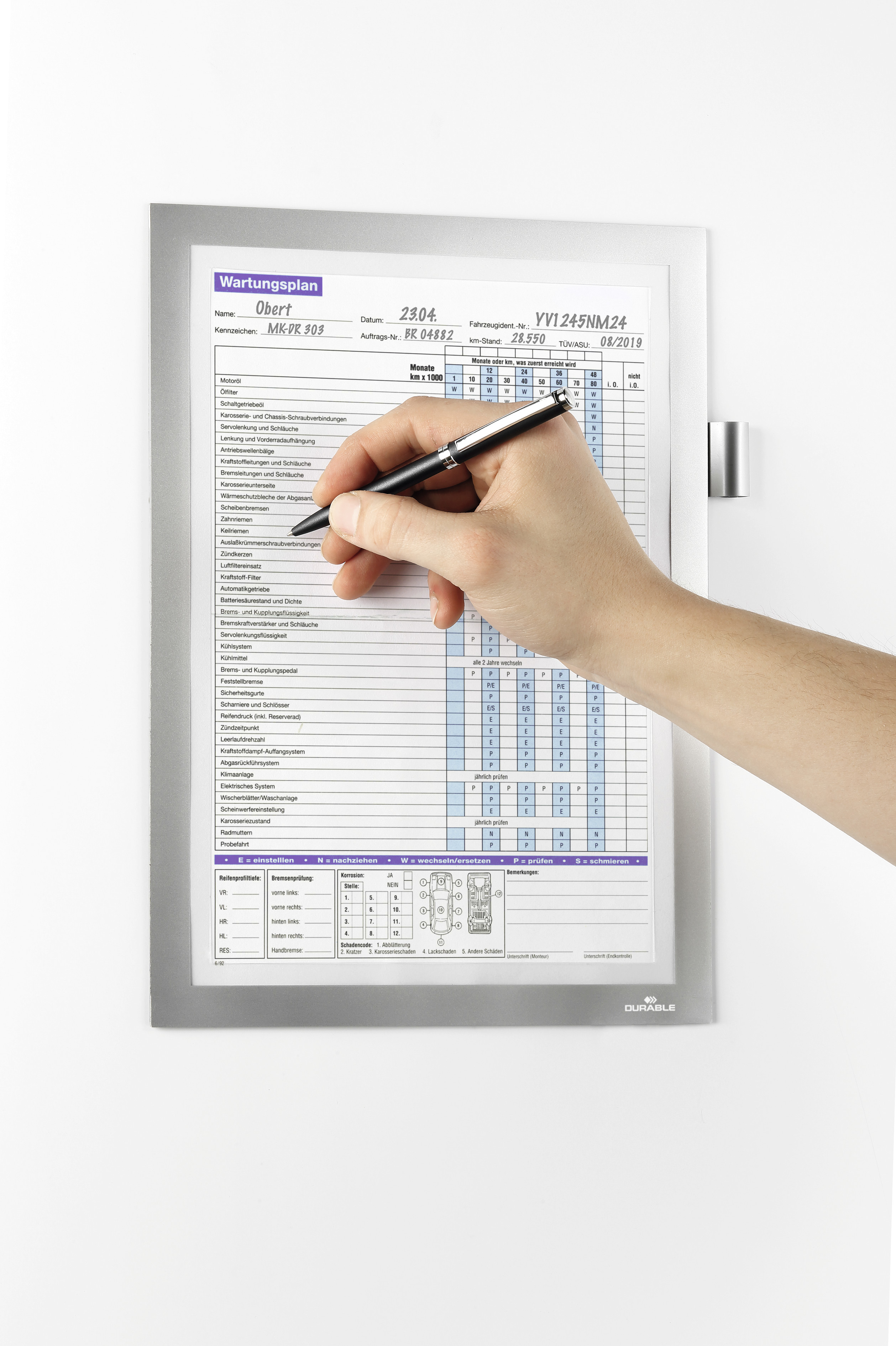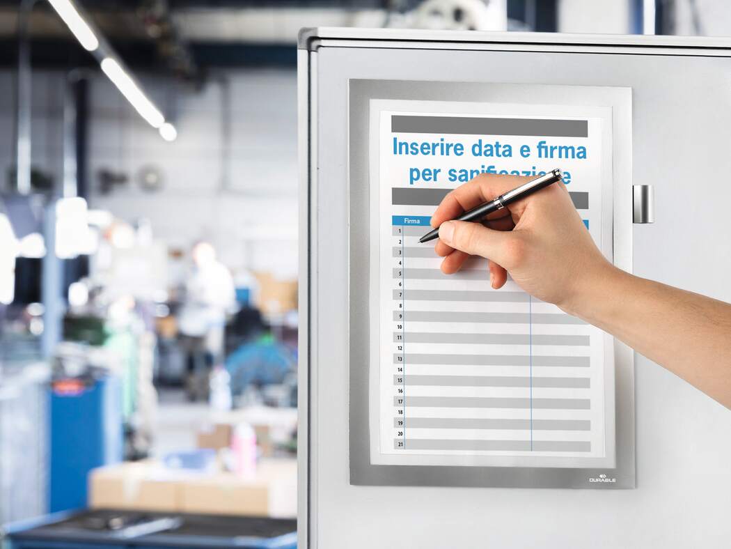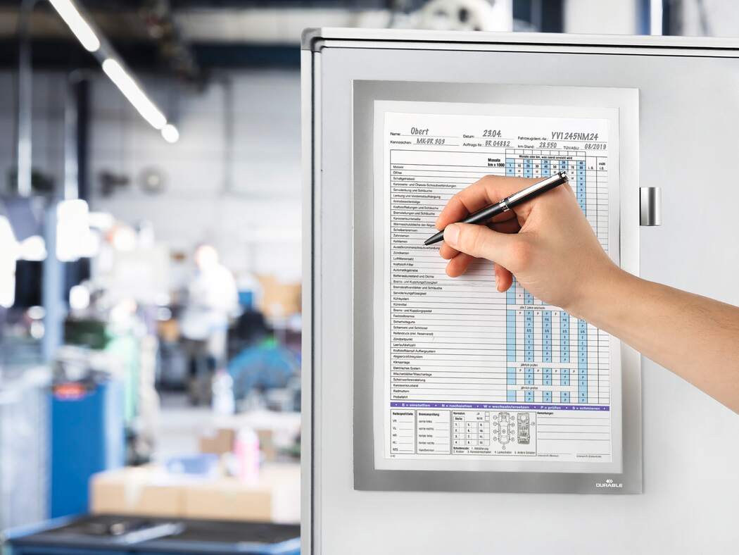 Använd magnethäftande DURAFRAME® MAGNETIC NOTE inforamar för t ex checklistor där noteringar skall göras direkt på pappret.