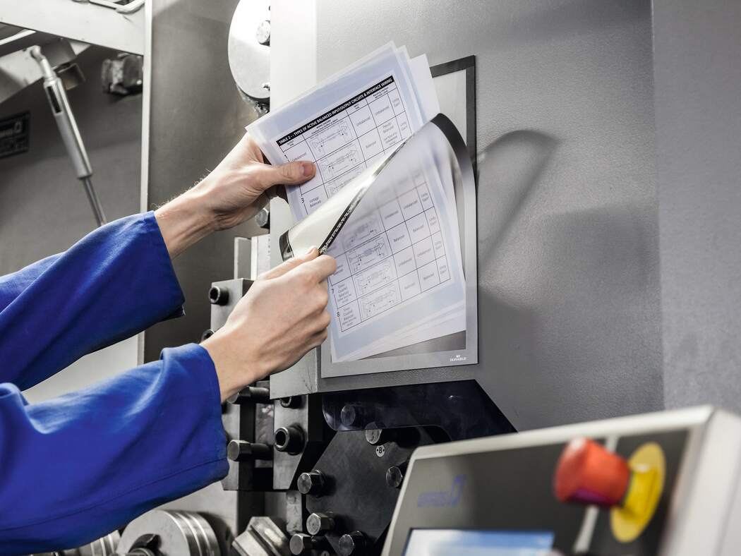 Magnethäftande infroram. Dokumentet ligger skyddat mellan två plastark och informationen visas på ett stilfullt sätt. För dokument i A4 format.