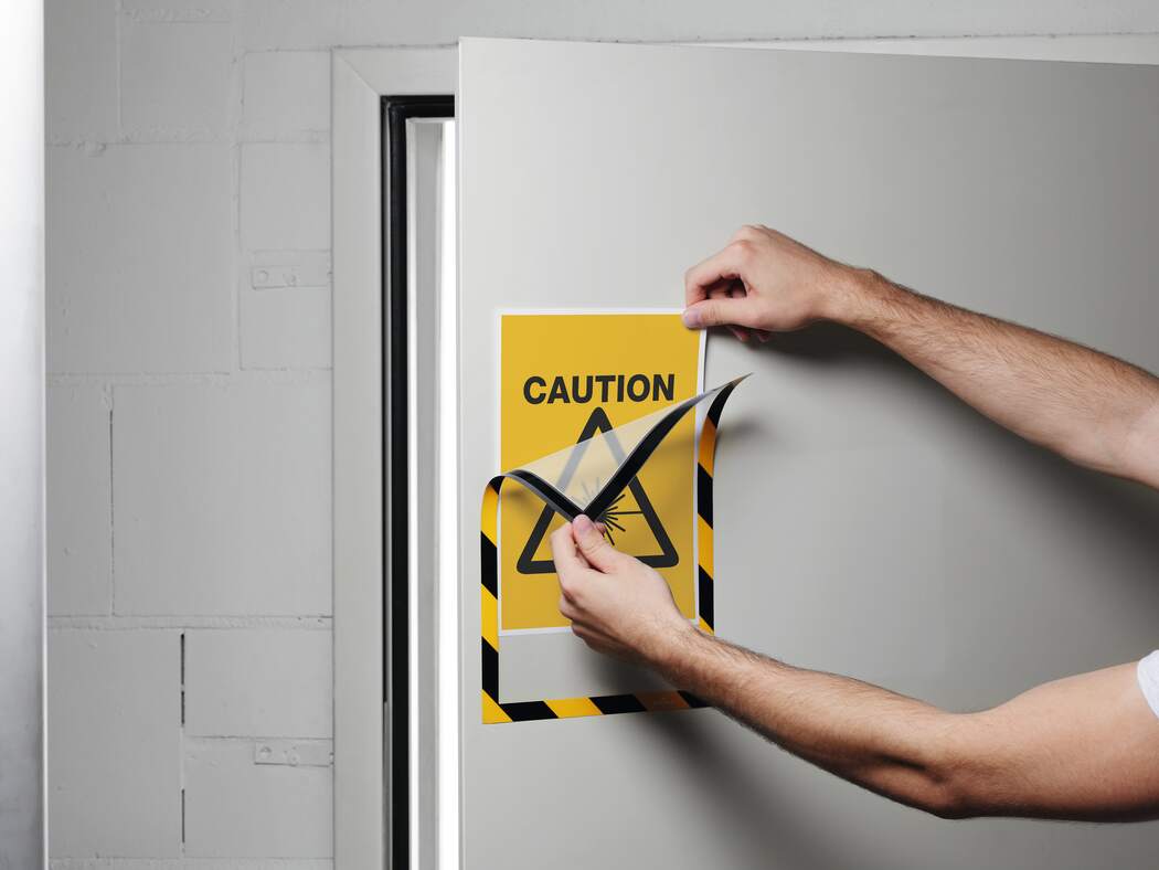 Magnethäftande inforam i varselfärger för säkerhets och varningsinformation i A4 format.