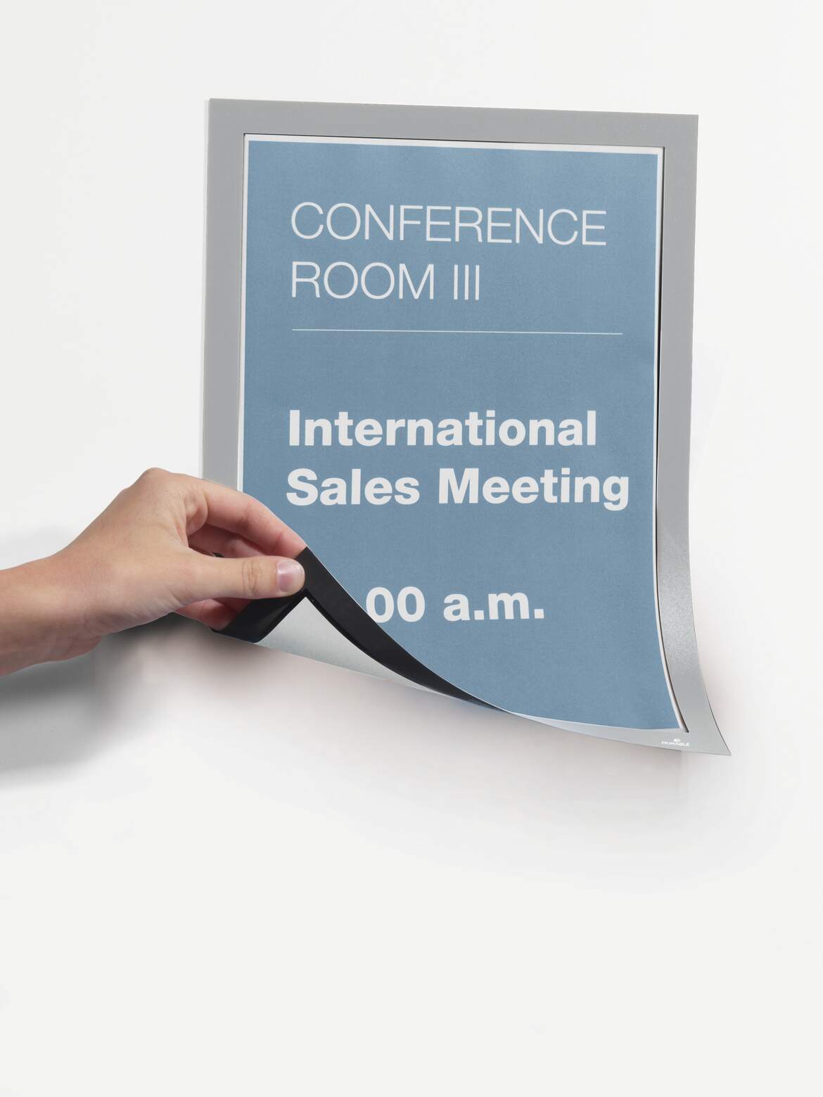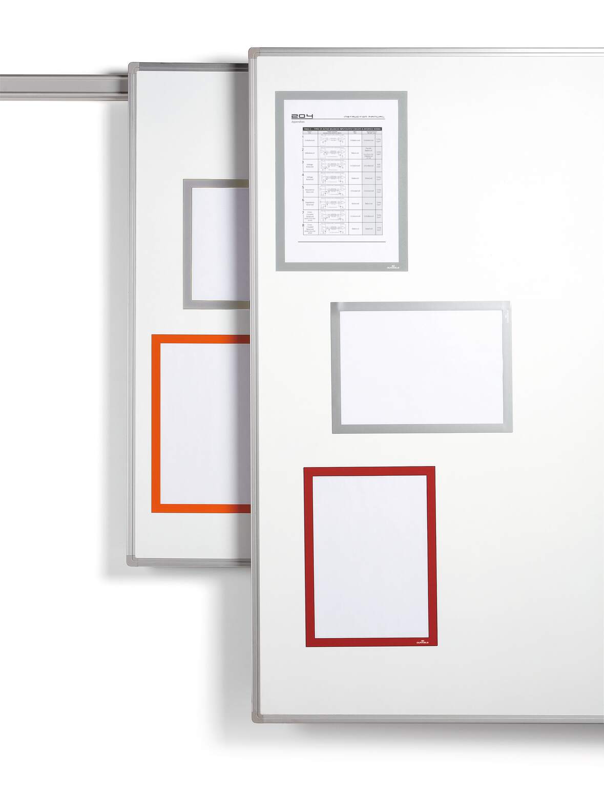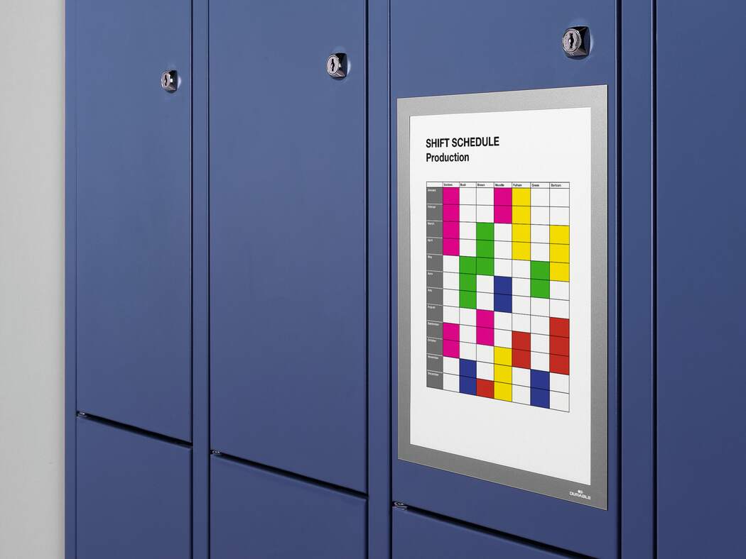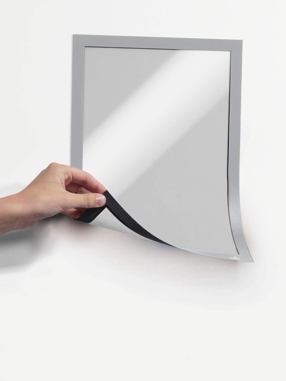 Använd magnethäftande inforamar DURAFRAME® MAGNETIC för att visa och presentera användarinstruktioner, maskinfakta, medarbetarinformation och annan tillfällig eller mer varaktig information på ett professionellt sätt. Lägg det skyddande arket - med magnetiskt fäste längs ramens kant - över dokumentet och sätt upp på exempelvis whiteboardtavlor, omklädningsskåp och metallväggar. Klart! Snyggare och enklare hantering än t ex tejp. För dokument i A4 format. Yttermått 236x323 mm. Färg: silver. Förpackning med 5 st.