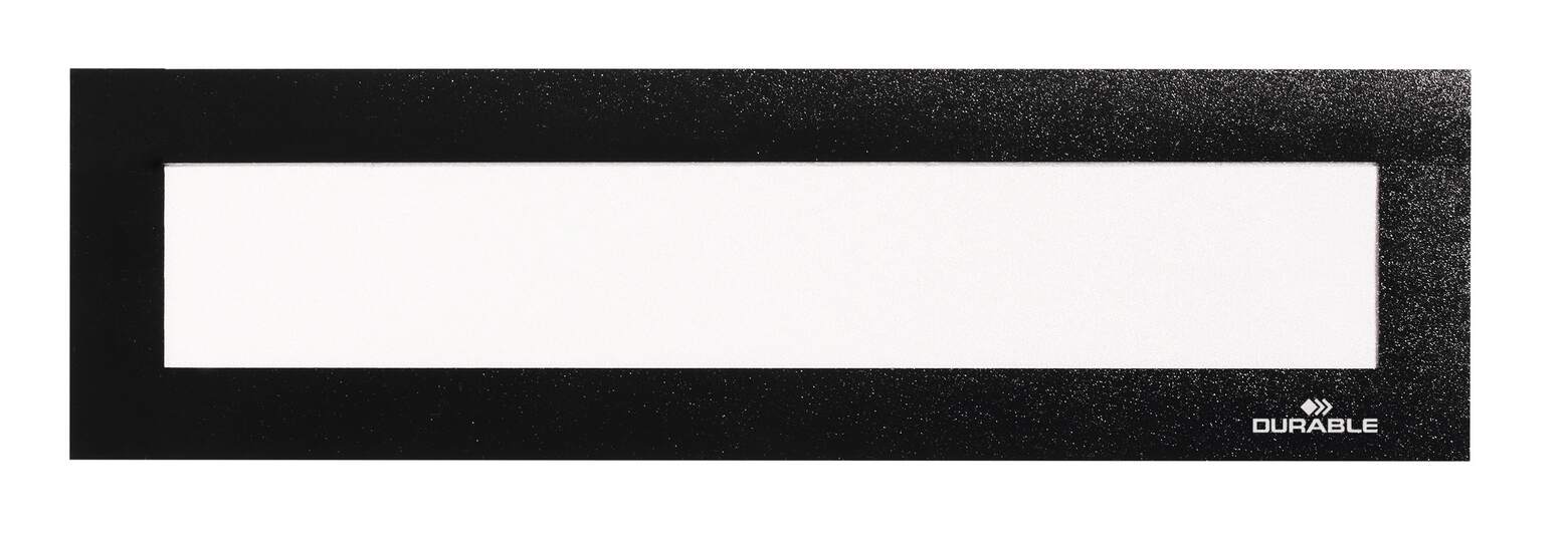 Strukturera information på metallunderlag som t ex whiteboardtavlor med tydliga och snygga rubriker med hjälp av magnethäftande inforamar DURAFRAME® MAGNETIC TOP. Rubrikramarna är lätta att använda - bara att sätta fast, flytta runt eller ta bort från underlaget efter behov. Skapa proffsiga rubriker med hjälp av mallar i gratisprogrammet DURAPRINT®, som finns på www.duraprint.se. Etikettens mått: 210x40 mm för rubrik till A4 stående eller A5 liggande format Yttermått: 236x66 mm. Färg: svart. Förpackning med 5 st.