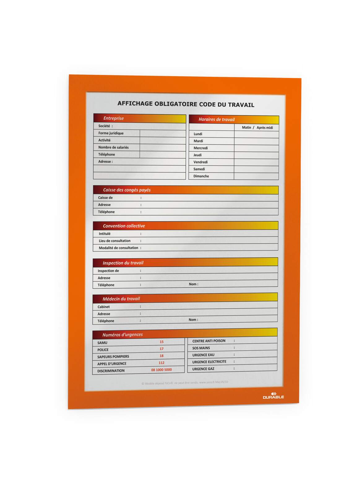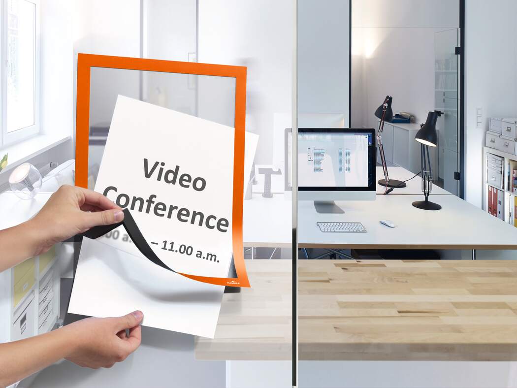 Använd självhäftande DURAFRAME® inforamar för att visa och presentera kampanjerbjudanden, öppettider, skyltar och annan tillfällig eller mer varaktig information på ett professionellt sätt. Enkelt att sätta i eller skifta budskap genom att lyfta framsidan med magnetstängning. Lätt att sätta upp - utan verktyg eller andra tillbehör - på fasta och släta ytor. Snyggare och enklare hantering än t ex tejp, häftstift eller häftklammer. Ramen ser likadan ut på fram och baksidan, vilket är bra när den placeras på glasrutor för dubbelsidigt budskap. Ramen går att ta bort från glasrutor. Målade, belagda eller laminerade ytor kan skadas om ramen tas bort. För dokument i A4 format. Yttermått 236x323 mm. Färg: orange. Förpackning med 2 st. Monteringsanvisning och ansvarsfriskrivning: Undvik att fästa självhäftande DURAFRAME® på målade, belagda eller laminerade ytor samt underlag som tapeter, porösa material och non-stick ytor. Se till att den yta som används är fri från damm, fett och smuts som kan påverka fästförmågan hos klistret. Säkerställ att nymålade eller lackerade ytor har torkat ordentligt innan du applicerar DURAFRAME® självhäftande inforam. Användare rekommenderas att kontrollera skicket på ytan före användning. DURABLE tar inte ansvar för eventuella skador som uppkommit genom felaktig användning. För användning på känsliga underlag som t ex tapeter, vänligen använd DURAFRAME® WALLPAPER. För användning på solexponerade glasytor rekommenderar vi DURAFRAME® SUN.