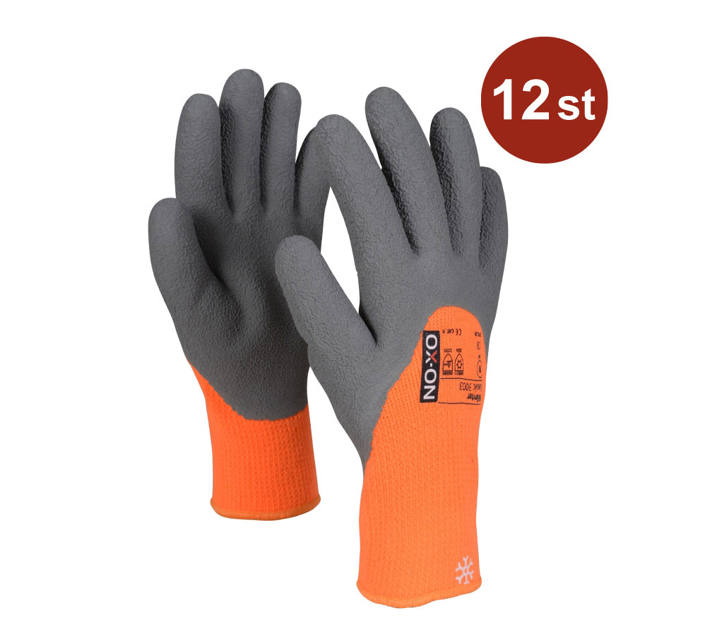 OX-ON Winter Basic 3003 är en ekonomiskt attraktiv vinterhandske för värme och bra grepp när du arbetar utomhus. Oavsett om den bärs privat eller yrkesmässigt är den särskilt lämplig för att arbeta med t.ex. avloppsvatten, byggnad, anläggning eller i samband med trädgårdsodling och trädgårdsskötsel. Fleeced akrylsticka för värme och mjukhet. Handflatan, fingrarna och över knogarna är belagda med latexskum för att säkerställa flexibilitet och en bekväm passform vid arbete i kalla miljöer. Latexbeläggningen har ett speciellt mönster för säkert grepp och robust spänst, även på ovansidan av fingrarna. OX-ON Winter Basic 3003 är en varm allroundhandske som skyddar alla fingrar och ger en bekväm passform.