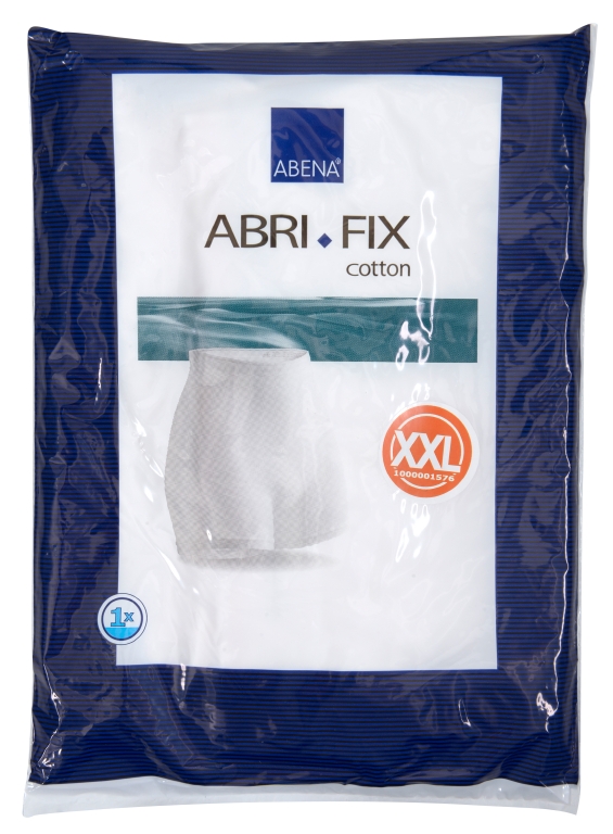 Abri-Fix Cotton är en elastisk andningsbar fixeringsbyxa med ben, tillverkad i främst bomullsmaterial. Bomullsmaterialet garanterar att fukt transporteras bort från huden, för en torr och behaglig känsla. Byxorna ser ut som vanliga underkläder. Det elastiska materialet och sticktekniken håller skyddet tätt mot kroppen vilket garanterar läckagesäkerhet. Det gör att de fungerar optimalt oavsett aktivitetsnivå och rörelseförmåga. Den sömlösa sticktekniken – ett innovativt sätt att producera textilier som är nästan fria från sömmar – förhindrar tryckmärken och hudirritation. Produkterna kan tvättas 100 gånger och är därför mycket kostnadseffektiva genom längre användningstid. Abri-Fix Cotton har färgkodad midjeresår för respektive storlek, och är även märkta med produktnamn, tvättråd och materialsammansättning. 80 % bomull, 14 % polyamid, 6 % elastan.