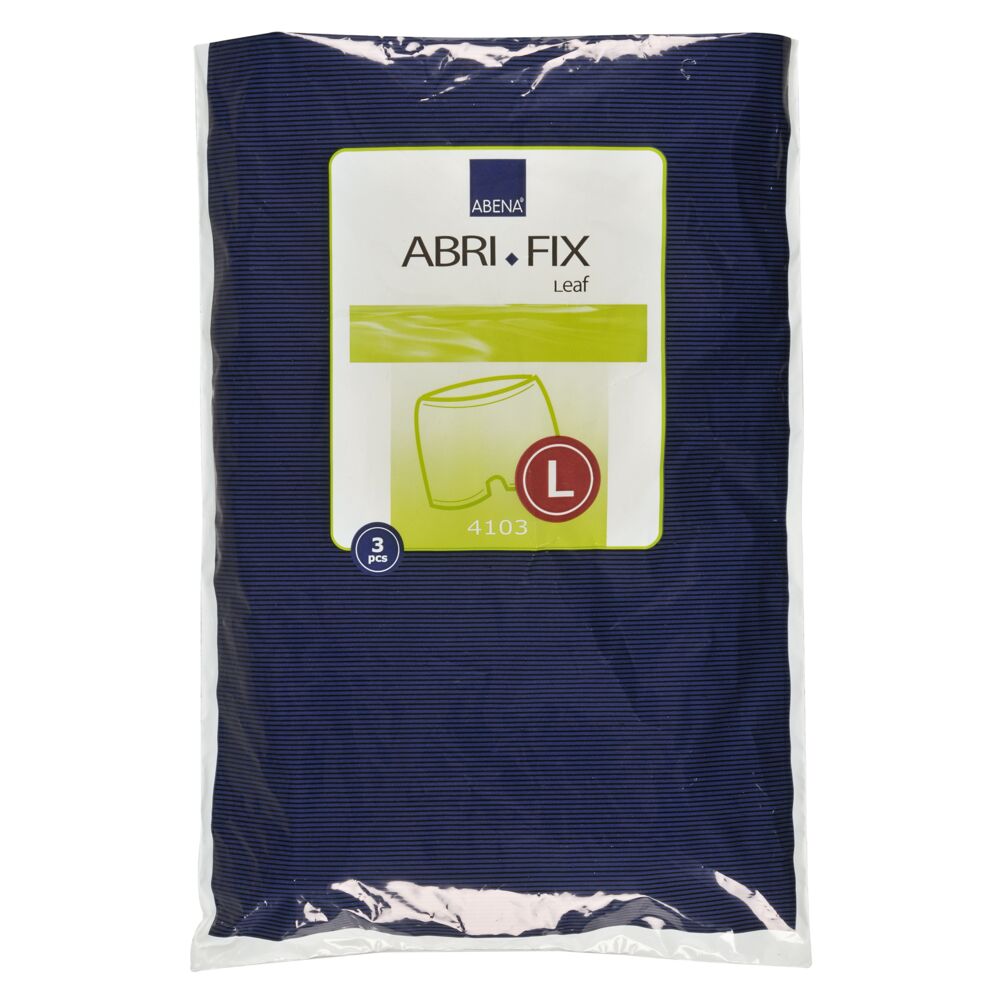 Abri-Fix Leaf är en elastisk fixeringsbyxa med ben av andningsbart, mjukt polyamidmaterial som är försett med förstärkningszoner. Byxorna ser ut som vanliga underkläder. Det elastiska materialet och sticktekniken fixerar både små och stora skydd tätt mot kroppen vilket garanterar läckagesäkerhet. Den sömlösa sticktekniken – ett innovativt sätt att producera textilier som är nästan fria från sömmar – förhindrar tryckmärken och hudirritation. Produkterna kan tvättas 100 gånger och är därför mycket kostnadseffektiva genom längre användningstid. Abri-Fix Leaf har färgad text för respektive storlek, och är även märkta med tvättinstruktioner och materialsammansättning. 95 % polyamid, 5 % elastan.
