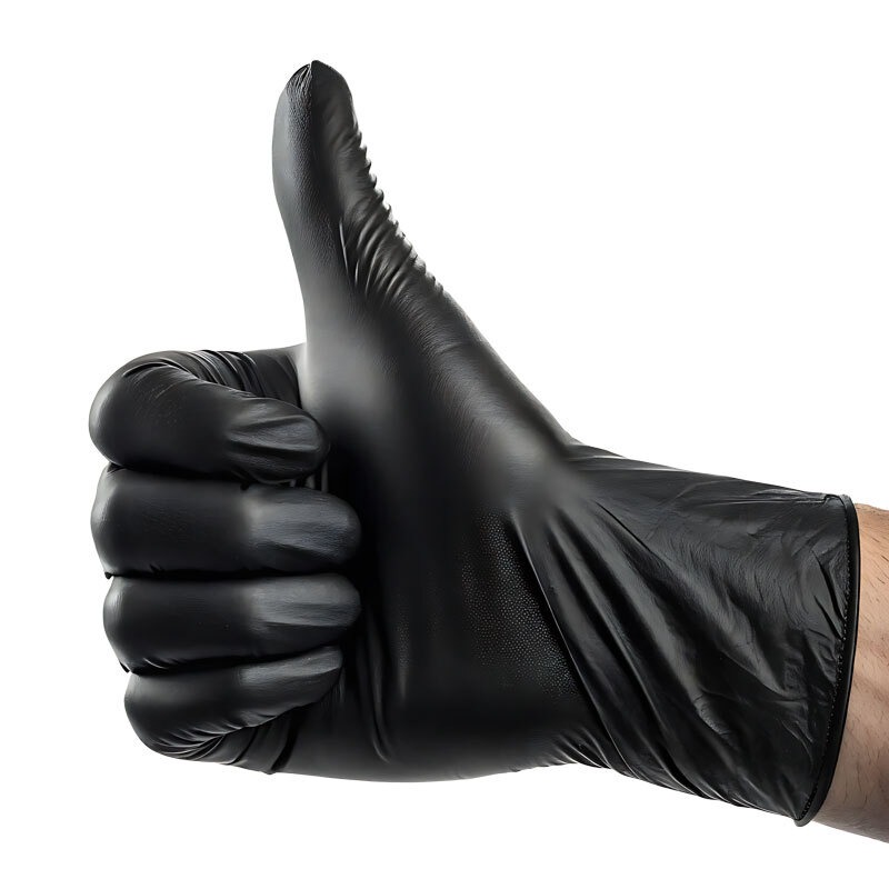 Svarta engångshandskar i nitril, helt puderfria och hypoallergena. Dessa handskar är flexibla och ger hög fingertoppskänslighet, vilket gör dem lämpliga för medicinska undersökningar, laboratoriearbete och livsmedelshantering där hygien och säkerhet är prioriterade.