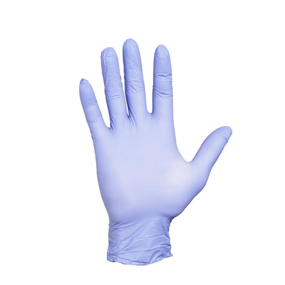Tunn, smidig engångshandske i nitril med texturerade fingertoppar för säkert grepp. Handskarna är utformade för professionella miljöer där hygien är kritiskt, såsom vård, provtagning, kontakt med kroppsvätskor, livsmedelshantering och rengöring.
