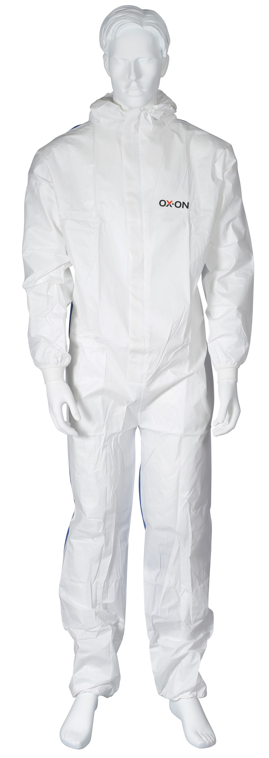 OX-ON Air Back Coverall Supreme är en mycket bekväm och exklusiv skyddsoverall för arbete inom underhåll, spraymålning, isolering, trä, metall, läkemedel och vissa kemikalier. Overallen kombinerar slitstyrka, skydd och hög komfort. Den unika andningsförmågan uppnås genom SMS-materialet på baksidan från huva till knän, medan resten är tillverkad i antistatisk non-woven polypropen med mikroporös film som skyddar mot luftburna partiklar såsom asbest.