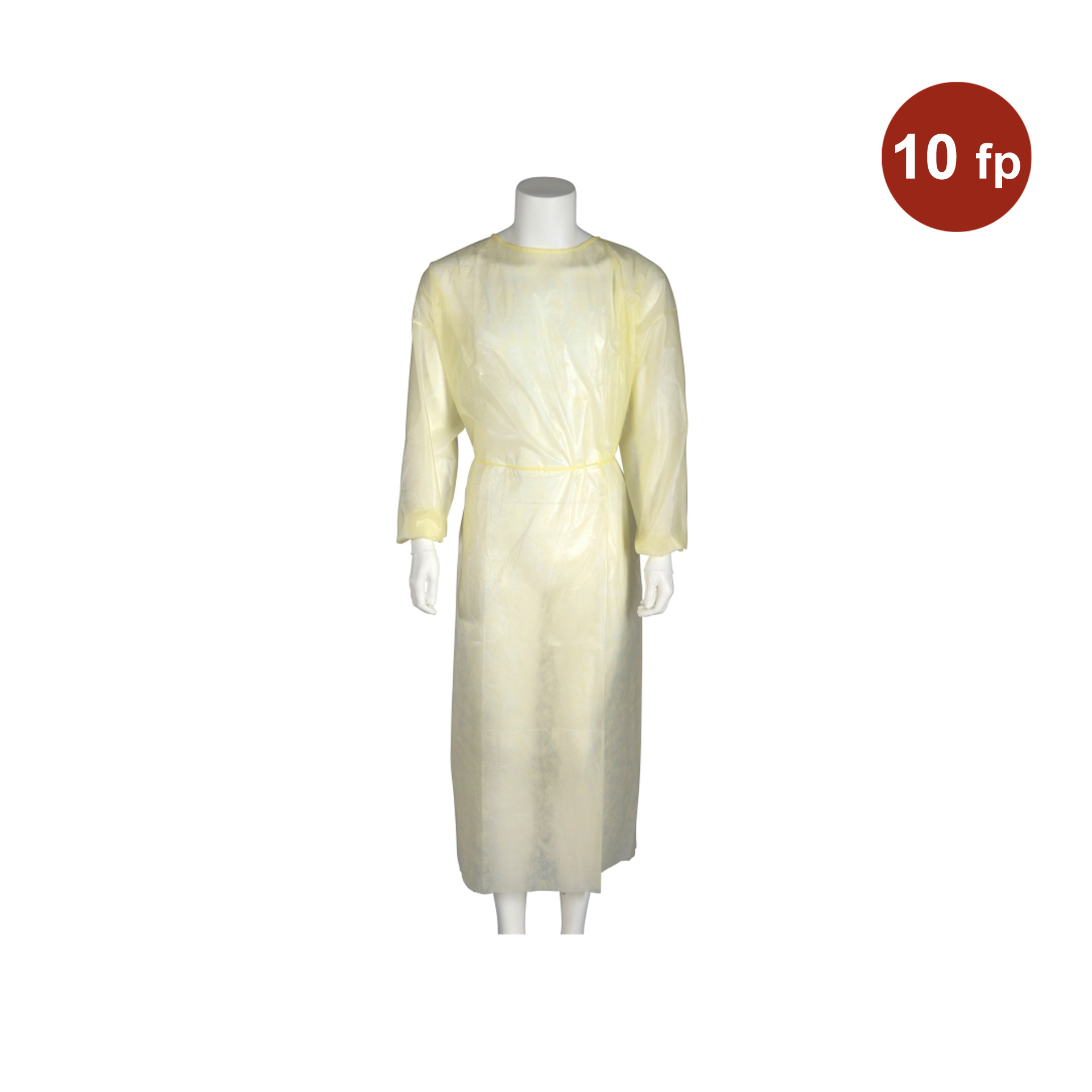 Vätsketät rock med manschett i ärmarna och knytband i nacken och midja. Ryggen har ett andningsbart material för att minska värmen som uppstår av isoleringsmaterialet på framsidan. Används för att skydda personalen, samt för att undvika korskontaminering exempelvis i samband med smittsamma sjukdomar. Rocken är latexfri och endast för engångsbruk.