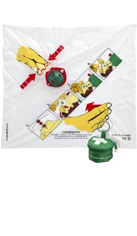 Cederroth Andningsmask i praktiskt etui med nyckelring. Hjälpmedel för att ge mun-mot-mun-andning på rätt sätt samtidigt som det minskar risken för kontakt mellan hjälpare och skadad. Andningsmask med backventil och tydliga instruktioner tryckta direkt på duken.