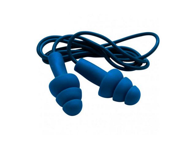 Metalldetekterbara hörselproppar med blått snöre, idealiska för användning inom livsmedelsindustrin