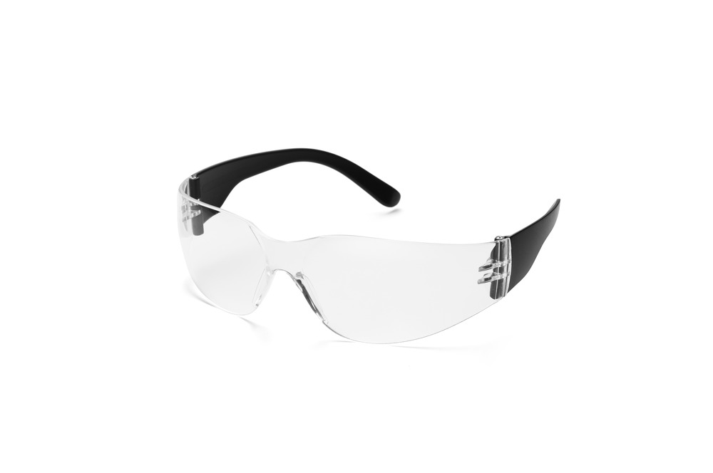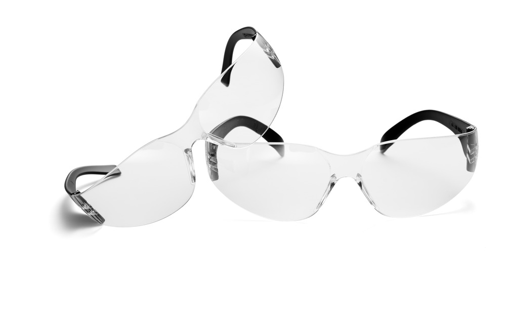 Skyddsglasögon i modern design med integrerad skalm och båge som ger mycket bra passform och stabilt "örongrepp". Klar imfri lins i reptålig polykarbonat skyddar ögonen effektivt och glasögonen är lätta att bära med en vikt på endast 17 g.