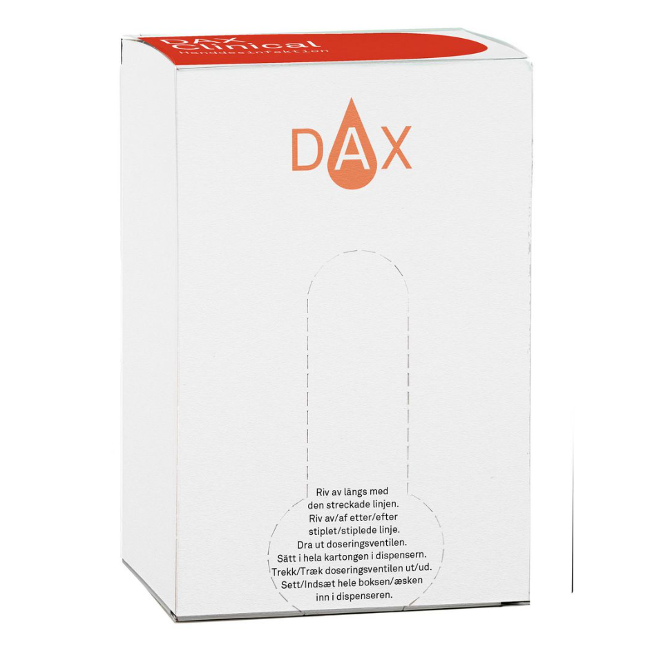 DAX Handdesinfektion Clinical är avsedd för effektiv desinfektion av händer där sjukdomsalstrande mikroorganismer ska avdödas. Produkten innehåller 75 vol% denaturerad etanol och är kliniskt testad för daglig användning inom vård och andra professionella miljöer. Den innehåller återfuktande ämnen som hjälper huden att behålla sin naturliga fuktbalans och förhindrar uttorkning.