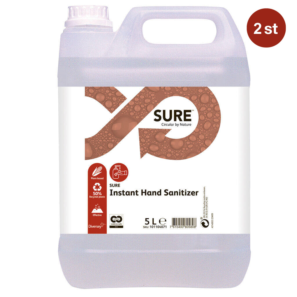 SURE Instant Hand Sanitizer är en del av ett unikt sortiment av växtbaserade, 100% biologiskt nedbrytbara, professionella rengöringsprodukter för alla dina dagliga rengöringsbehov. SURE Instant Hand Sanitizer möjligt gör en flexibel hand hygien lösning utan behov av vatten. Produkten är icke-klassifiserad, fri från alkohol som effektiv desinficerar och vårdar huden. Effektivt mot bakterie och svamp och även effektivt mot virus t.ex. H1N1. Produkten innehåller en 100% naturlig parfym som ger en uppfriskande doft. SURE Instant Hand Sanitizer har en mycket god säkerhetsprofil. Den är biologiskt nedbrytbar, alkohol och triclosanfri och har ingen risk klassifisering när den används enligt instruktioner.