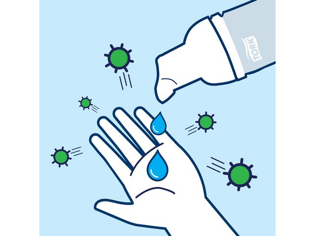 Tork handdesinfektion innehåller 75% v/v denaturerad alkohol, vilket gör den perfekt för desinficering av händer på kontor och allmänna platser där vatten inte finns tillgängligt.