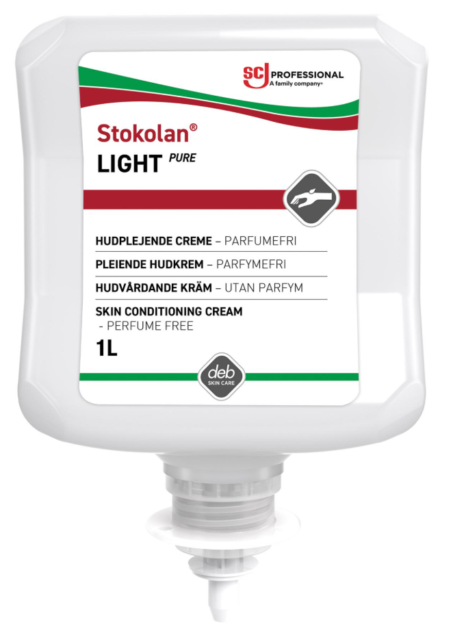 Deb Stokolan Light Pure är en lätt texturerad, oparfymerad och färgfri hudvårdande kräm för professionellt bruk som hjälper till att vårda normal till torr hud. Krämen innehåller glycerin, allantoin och sheasmör som återfuktar, vårdar och påskyndar hudens naturliga läkning. Produkten är lämplig för användning inom industrin, livsmedelshantering, hälsovård, kontor och kommersiella miljöer. Kan användas under latex-, nitril- och vinylhandskar.