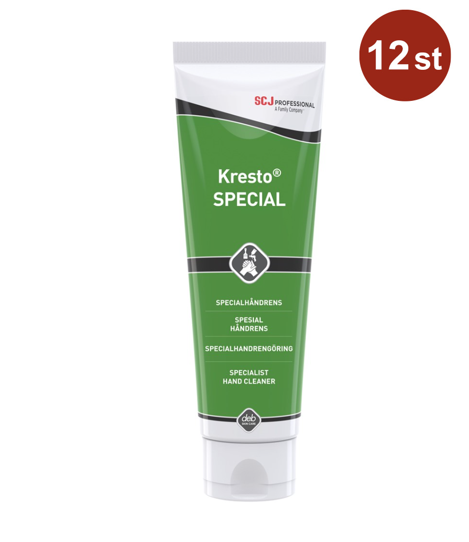 Deb Kresto Special Ultra är en effektiv handrengöring i 250 ml tub, utvecklad för professionellt bruk där djupgående rengöring krävs utan att huden skadas. Produkten innehåller milt speciallösningsmedel som rengör på djupet och en leraktig matrix med 100 % aktiva ingredienser, vilket gör att endast en liten mängd behövs för maximal effekt.
