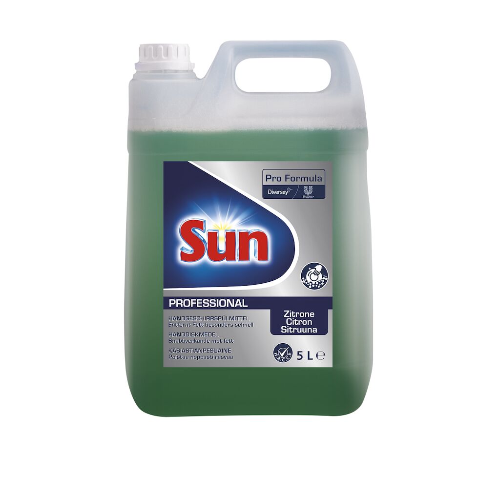 Sun Pro Formula Handdiskmedel är ett flytande handdiskmedel för manuell diskning av porslin, bestick, glas, kastruller, stekpannor och alla tvättbara köksredskap. Formulan är speciellt framtagen för att snabbt avlägsna hårt fett och fläckar och garanterar ett skinande resultat. Eftersom den är pH-neutral för huden är den skonsam mot händerna. Citronparfymen lämnar en behaglig ren doft.