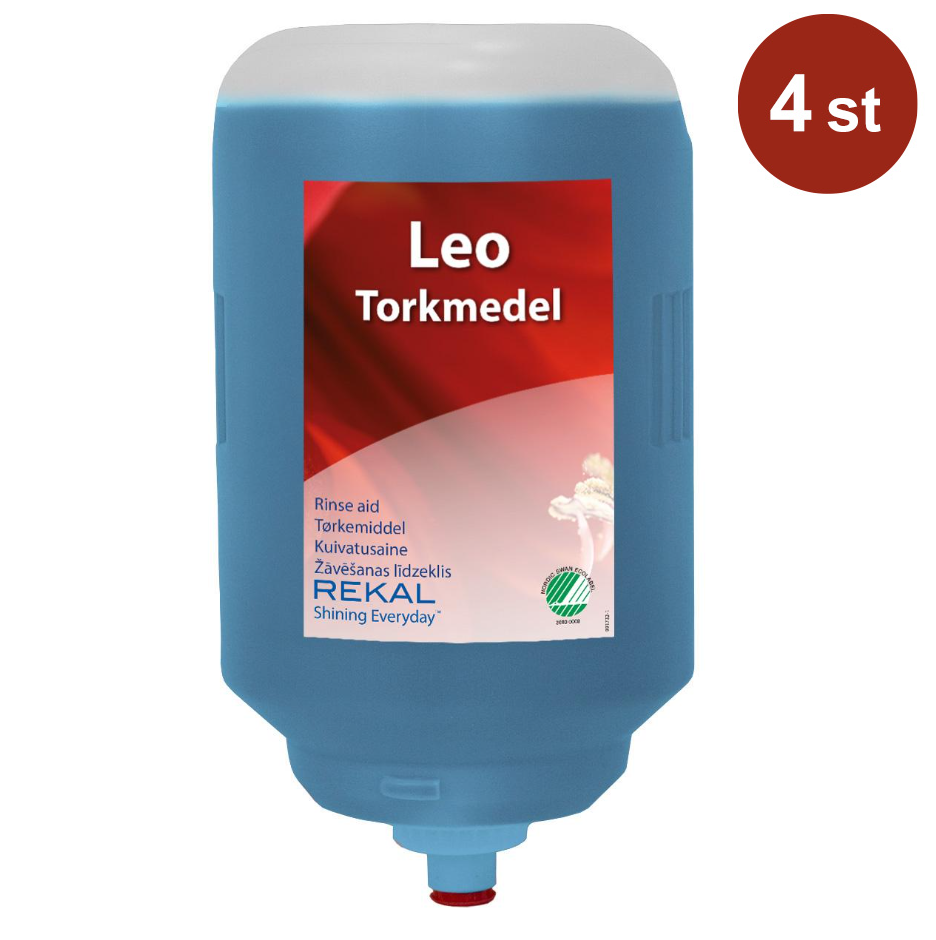 Rekal Leo torkmedel är ett miljömärkt neutralt skölj- och torkmedel utvecklat för professionella storköksdiskmaskiner. Produkten säkerställer snabb, jämn och fläckfri torkning även vid hårt belastade disksituationer.