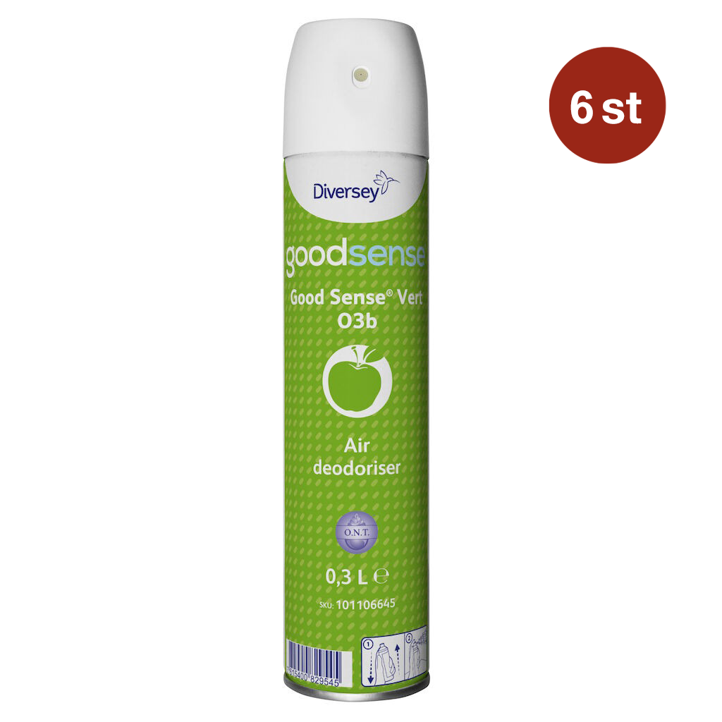 Good Sense aerosolspray har utvecklats för att lösa de dagliga luktproblemen i byggnader. Enkel, bekväm och säker att använda gör Good Sense aerosolspray till den ideala lösningen för att få bukt på luktproblem i områden som offentliga miljöer, barer, hotell, restauranger, kontor, sanitetsutrymmen, mm. Doften innehåller luktneutraliserande teknologi (O.N.T), som kemiskt neutraliserar och förstör obehagliga lukter och är effektiv mot en mängd olika dåliga lukter som urin, kroppslukt, rök, mögel, mm.