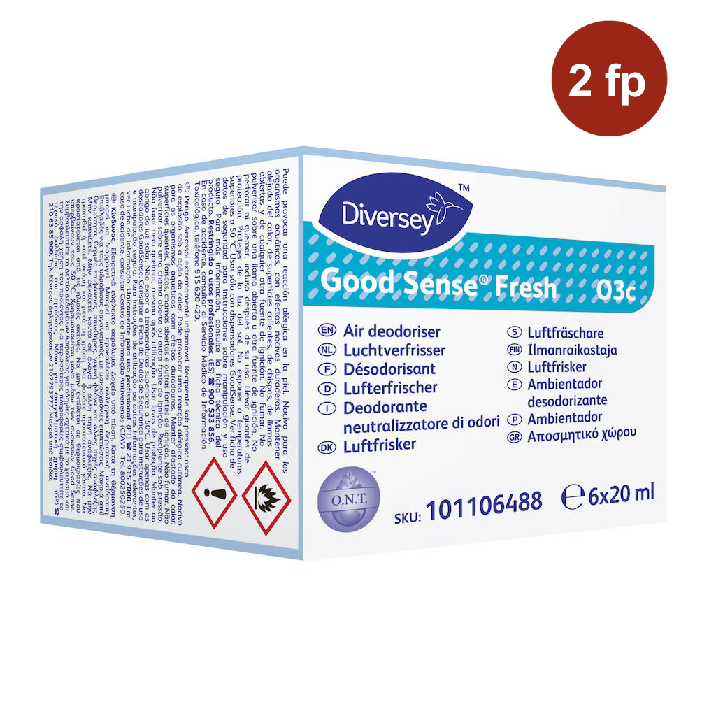 Superkoncentrerad refillpatron som ger en fin, torr spridning av doften. Doften innehåller luktneutraliserande teknologi (O.N.T), som kemiskt neutraliserar och förstör obehagliga lukter och är effektiv mot en mängd olika dåliga lukter som urin, kroppslukt, rök, mögel, mm.. Good Sense doseringsenhet visar omedelbart betydande minskning av dåligt lukt efter installation med en kvarvarande verkan på upp till fyra timmar.