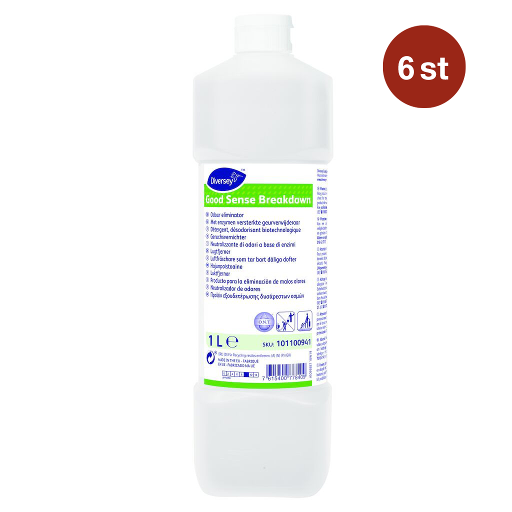 Use Good Sense Breakdown for neutralizing and deodorizing all organic odours and carpet stains. Also use for deodorizing washroom, plumbing pipes, grease traps, and other areas.