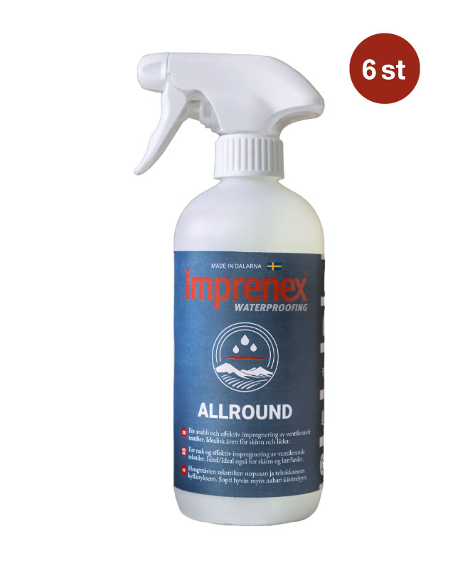 | Egenskaper | Imprenex Allround är speciellt framtagen för impregnering av funktionsplagg, skor och kängor. Den vattenbaserade impregneringen återger och ökar textilens smuts- och vattenavvisande förmåga utan att påverka membranens andningsförmåga, struktur eller färg. |