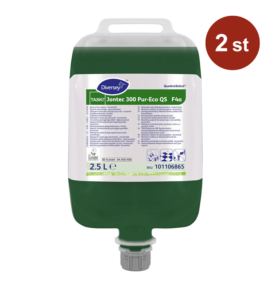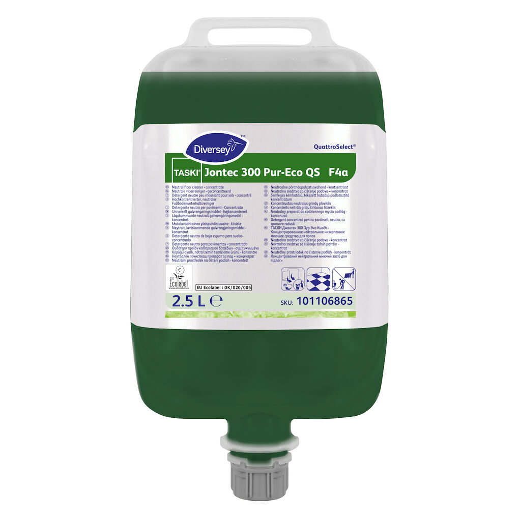 Diversey Taski Jontec 300 Pur-Eco QS F4a Lågskummande Neutralt Golvrengöringsmedel i QuattroSelect Refillpåse