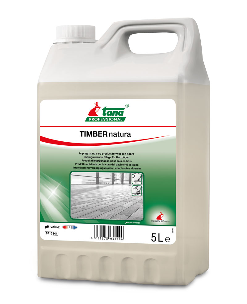TIMBER natura är ett impregnerande och skyddande vårdmedel med oljeeffekt, utvecklat för professionell rengöring och underhåll av trägolv. Produkten är en kostnadseffektiv lösning som kan appliceras med standardutrustning inom professionell golvvård.