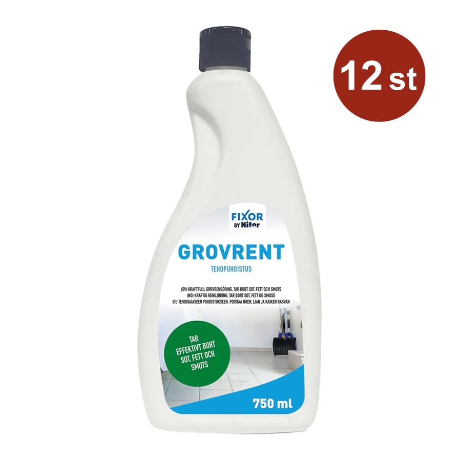 Grovrent tar effektivt bort sot, smuts och fett på alla ytor som tål vatten. För rengöring i t.ex. duschutrymmen, spisfläktar, ugnar, spisar och på hårt smutsade golv. Utmärkt till borttagning av sot på braskaminens glasluckor. Bruksanvisning: Vid rengöring av glasytor skölj/eftertorka med vatten för att undvika flammighet. Dosering: För svåra fläckar: 1 kapsyl till 8 l. vatten. För extra svåra fläckar: 2,5 kapsyler till 1 l. vatten. Tänk på att ömtåliga färgytor inte tål höga doseringar.