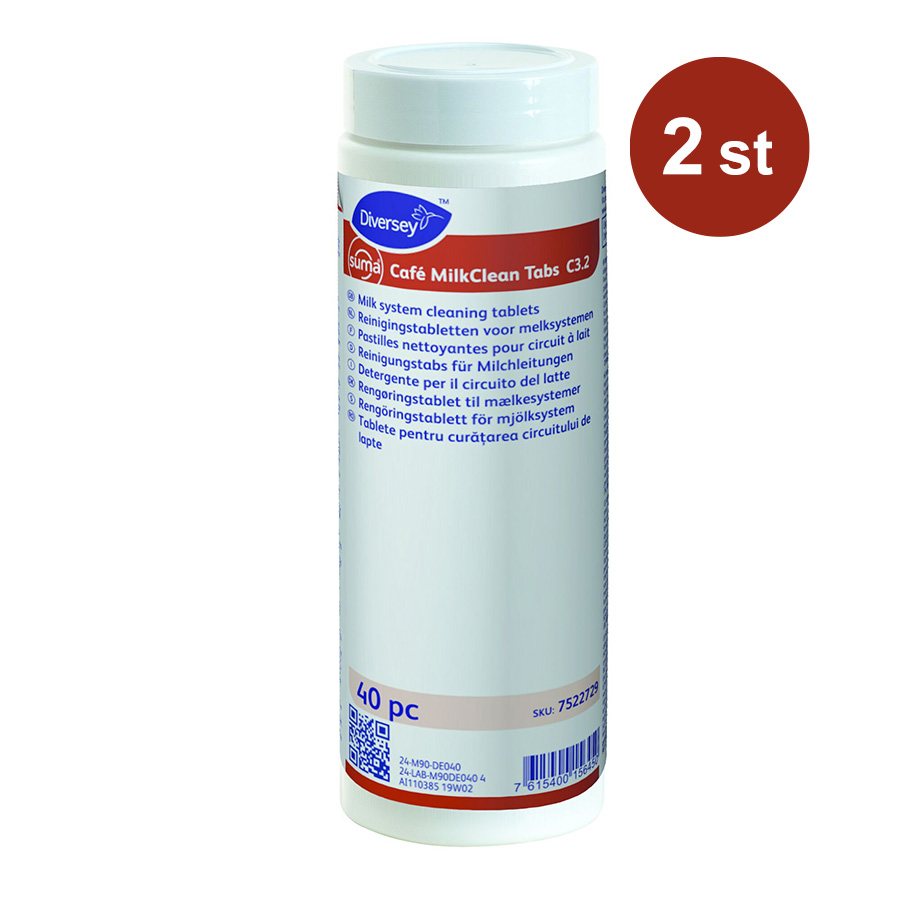 Suma Café MilkClean Tabs är speciellt utvecklad för rengöring av mjölksystem och delar på kaffe- och espressomaskiner. När tabletten löses upp i vatten skapas en rengöringslösning som tar bort mjölkrester och ansamlingar på ångrör, ventiler och slangar. Kan användas på automatiska mjölkskummare, manuella ångrör, mjölkkannor samt traditionella och superautomatiska espressomaskiner. Tabletter ger en bekväm och flexibel lagring, hantering och användning.