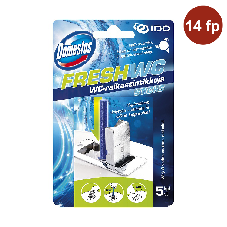 Domestos WC Sticks Ocean Fresh motverkar kalk och beläggningar. Lägg Domestos Fresh WC Sticks direkt i behållaren under spolknappen och få fräsch doft och blått vatten vid varje spolning.